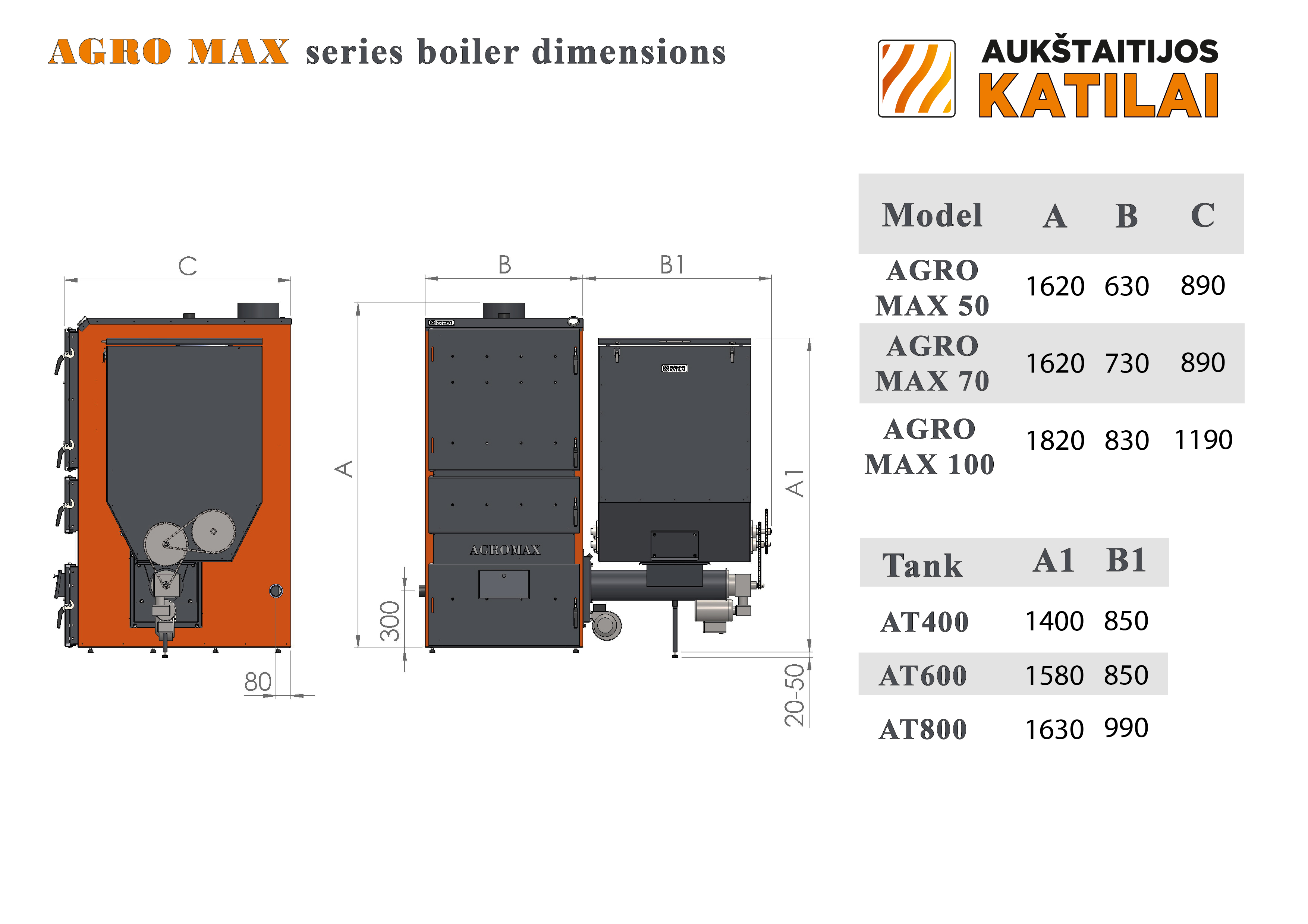 Akatilai AGROMAX UNI AT800 hakkepuidukatel 100 kW, hind 7500 eur + km