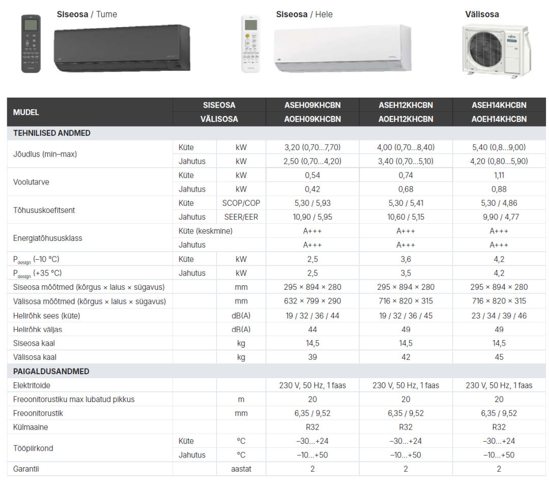 Lisainfot leiad: Fujitsu NORDIC AIRSTAGE KH R32 series info