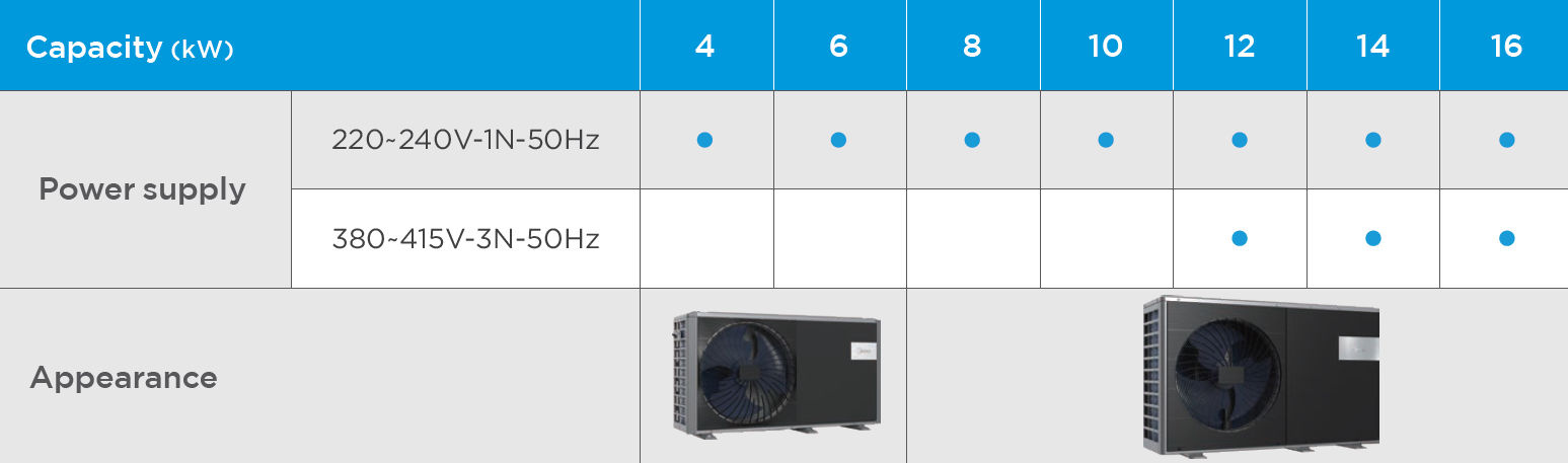 Lisainfot leiad: Midea MARS Mono R290 info