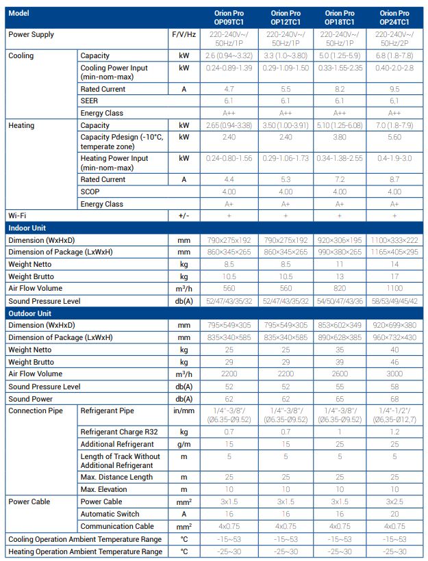 Nordis ORION PRO Split OP24TC1 konditsioneer-õhksoojuspump 7,0 kW, hind 870 eur + km