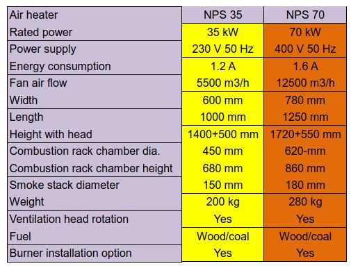 MTM NPS õhkküttekatlad, tahkeküttekatlad