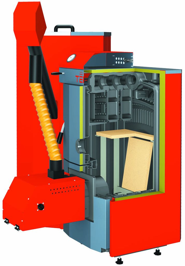 Tekla KOMFORT kateldel on automaatne põleti ja soojusvaheti puhastamine ning VÄLINE tuhakast.